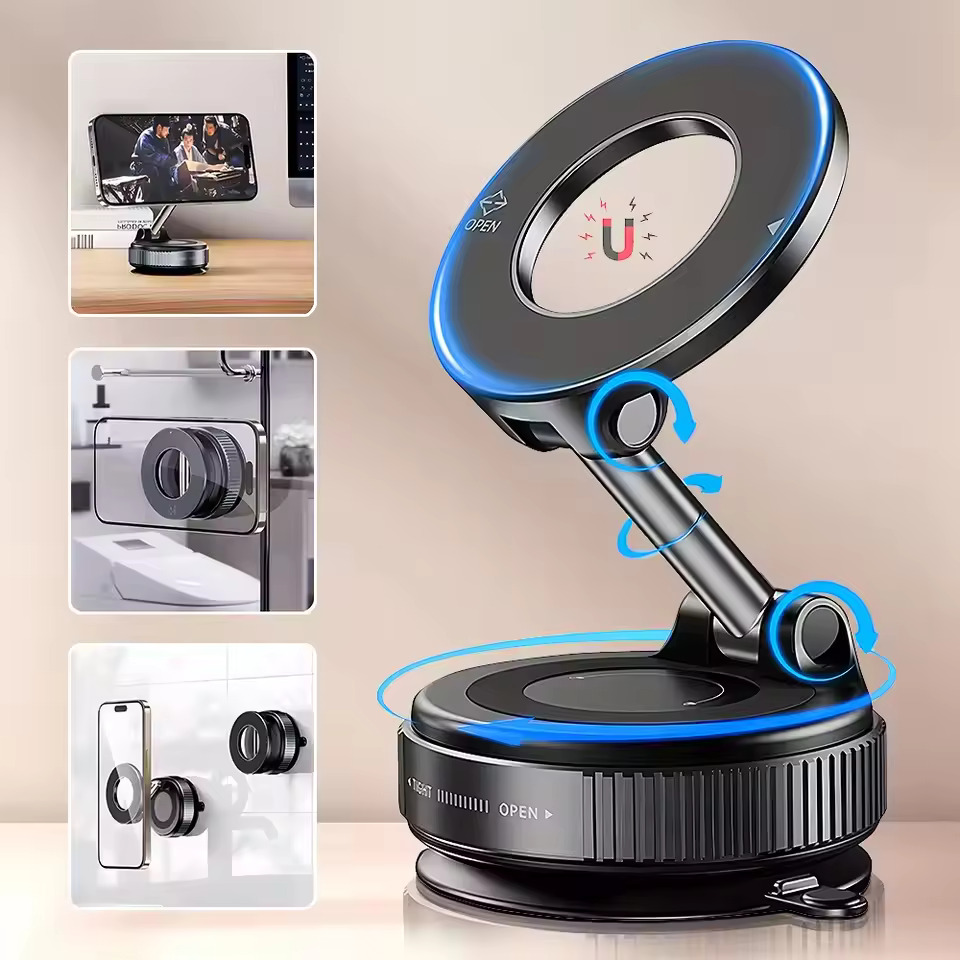 Equipped with ultra-secure magnetic vacuum suction, this mount ensures your smartphone stays firmly in place even on bumpy roads.